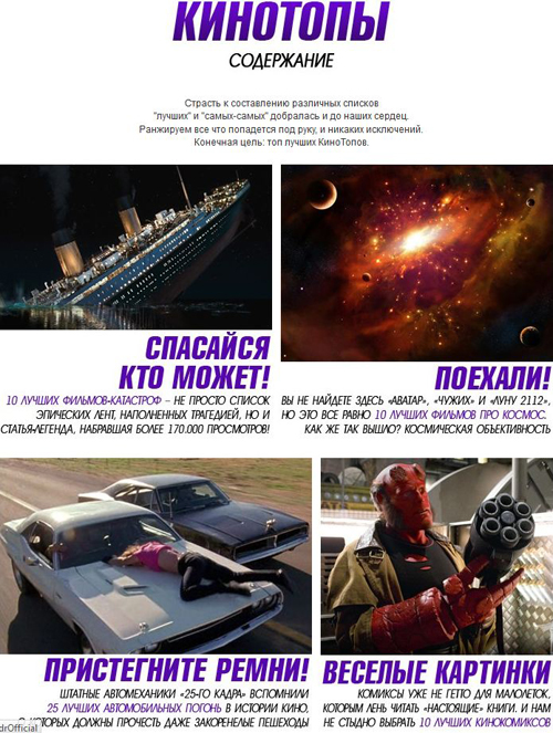 Новый баннер ведет в удобное и (как нам кажется) вполне симпатичное меню, где вы можете пропасть на долгие часы, если вдруг начнете изучать здешние подборки самых-самых.