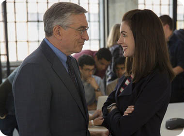 Само собой, не обходится здесь без штампов и поднадоевшей «формальной» структуры повествования (иногда слишком затянутой), к тому же, мелодрама, даже несмотря на все авторские усовершенствования, остается скорее женским жанром, провоцирующим зрителя на довольно сильный эмоциональный отклик. Тем не менее, «Стажера» можно назвать весьма достойной картиной, которая с самых первых кадров ненавязчиво и очень приятно повествует о правильном, светлом и добром. Такие вечные темы как сложность и запутанность человеческих взаимоотношений, отношения отцов и детей, природа любви и ненависти, зависти и прощения, вопросы веры в себя и поиска правильных ориентиров переплетаются с современными мотивами и щедро сдабриваются совершенно беззлобными шутками про джентльменские привычки, никогда не выходящие из моды. Да, быть может, очередная история о человеке, который приходит, когда его об этом не просят и бескорыстно помогает, привнося в жизнь окружающих частичку добра и света, выглядит слишком наивно и оптимистично. Но в сочетании с серьезным контекстом, напоминающим, что за нашу жизнь ответственны только мы сами, такое романтичное и жизнерадостное повествование смотрится более, чем органично.