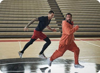 В момент, когда Стэнли и Бо выстраивают связь, становится ясно, что сценарий «Прорваться в НБА» придерживается формулы любого другого спортивного фильма. Тем не менее, сценарий этот очень уверенный и заставляет болеть за персонажей, вместе и по отдельности, на каждом этапе их совместного предприятия. Многое из этого прорастает из симпатий к артистам – Сэндлер, например, перестал разбавлять свой образ жеманством. Его Стэнли – просто порядочный мужчина, который подкупает своим подходом и речами, пускай его предыстория в какой-то момент раскрывает столь вяло, что чувствуется её неуклюжесть в сценарии.