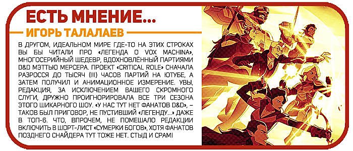 В этом месте можно смело включить режим стариковского брюзжания, и, закатив глаза, подобно Роберту Дауни-младшему с известного (и порядком утратившего свой первоначальный юмористический потенциал) кадра, разразиться тирадой о падении вкусов у современной молодёжи. Слыханное ли дело – в топ лучших анимационных лент опять пробрался сериал (как будто «нормального» полного метра не было)? Да ещё не просто сериал, а экранизация многопользовательской игры, что по умолчанию является довеском, ненужной (общей массе зрителей) сувенирной продукцией и смысловым аппендиксом в одном флаконе. Ну и вишенка на торте – это уже
