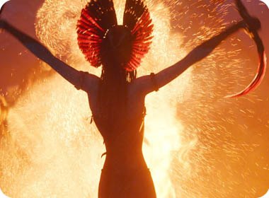 Исправлена и ещё одна «ошибка» «Пути воды» – уменьшенный масштаб финальной битвы, которая на фоне финала первого «Аватара» выглядела чуть ли не шагом назад из-за того, что на кону стояло не будущее связи на’ви с Эйвой, а лишь угроза отдельным членам семьи Салли. Третий акт «Пламени и Пепла» разворачивает перед нами грандиозную битву во время ежедневного солнечного затмения, которая вполне тянет на звание генерального сражения между землянами и пандорцами. Целый флот RDA и огнепоклонники Варанг против нескольких племён на’ви и тулкунов дают жару и в воде, и в воздухе. Не останется в стороне и Эйва, ну а на сладкое прямо посреди всей этой заварушки бушует магнитный вихрь, разрывающий корабли в клочья.