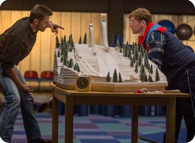 К правильно созданной атмосфере здесь добавляется и отличная химия между ведущим дуэтом - в отношениях Эдди и Бронсона Пири явно хватает и искрометного задора, и накала страстей, и прекрасных юмористических вставок. Конечно, большая часть внимания сосредоточена на взаимодействии новоиспеченных спортсмена с тренером, процессе тренировок и подготовке к зимней Олимпиаде в Калгари. Но даже в эпизодах с такими, казалось бы, чисто механическими операциями, проявляется столько юмора и своеобразия героев и раскрывается такая невероятная степень дружеского участия, что мысль о возможных спортивных (и каких-либо других) стандартных кадрах начисто вылетает из головы, не успев сформироваться. Да и вообще, мысли о клише можно выбрасывать после демонстрирования героем Джекмана лично разработанной методики полета и приземления.