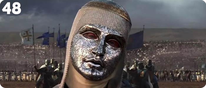 Король Иерусалима Балдуин IV, сыгранный в основном одними глазами Эдварда Нортона в «Царстве небесном» был несчастной персоной. С одной стороны – абсолютная власть монарха и интересные оупен эйры с мусульманскими ордами, а с другой – проказа, обезобразившая лицо молодого человека и вынуждающая его носить маску, дабы уродством своим не смущать подчинённых. Воистину, не в деньгах счастье. Но лучше быть несчастным и богатым, чем несчастным и бедным – вы только взгляните на его парадно-выходную маску! Настоящее произведение искусства!