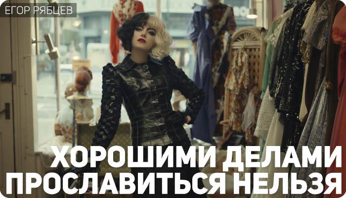 Виноват ли в этом постмодернизм, или всё же наш мир окончательно свихнулся, но Disney после «Малефисенты» решил переосмыслить историю другого своего знакового злодея – Круэллы «Стервеллы» Де Виль. Следуя трендам, сценарий должен раскрыть её происхождение, представив Круэллу в качестве жертвы обстоятельств. Амбиции режиссёра Крэйга Гиллеспи, признанного автора «Тони против всех», накладываются на его же чувство стиля: можно сколь угодно иронизировать о дальнейшем творческом направлении студии Disney (от демонстрации событий «Золушки» с точки зрения злой мачехи до «Короля Льва» глазами Шрама), но факт остаётся фактом – история Круэллы оказалась сама по себе достаточно интересной, чтобы заполучить собственный фильм, иметь при этом креативный потенциал и сделать проект запоминающимся.