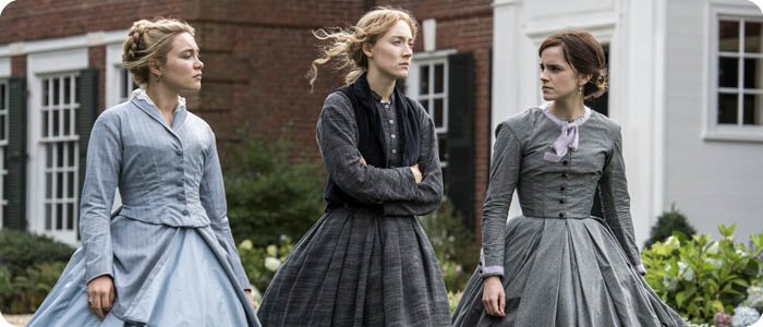 Каст максимально прекрасный. Эмма Уотсон играет старшую сестру, которая и о балах мечтает, и на любовь в стиле «рай в шалаше» вполне согласна. Сирша Ронан, сыгравшая вторую по старшинству сестру, прекрасно показала страстную и независимую девушку, мечтающую о карьере писательницы и старающуюся помочь своей семье всему способами. Флоренс Пью, следующая по возрасту сестра, показывает противоречивого персонажа, ибо несмотря на любовь к сёстрам, она может пойти и на гнусность в их отношении. Поначалу актриса не восприниматся в этом амплуа, как-то уж слишком резко выделяется она на фоне остальных и не походит на юную деву, но Пью довольно быстро переубеждает зрителя.