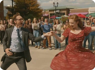 Собственно, сам Чак во плоти (не такая уж большая, но заметная роль Тома Хиддлстона) появится на экране только во втором акте из здешних трёх. В этом, как и практически во всём, «Жизнь Чака» Майка Флэнагана следует своему литературному оригиналу, рассказывая задом наперёд историю одновременно удивительного и ординарного человека, ставшего центром мироздания. На вид типичный банковский служащий – вежливая улыбка, белая рубашка, тёмный галстук, привитая с детства любовь к математике и танцам. Из этих незначительных переменных складывается настоящее уравнение вселенной, целая жизнь, которая сужается с каждым шагом – пока одновременно со смертью не достигнет финальной точки. Таков естественный ход вещей и никто, а уж тем более Чак Кранц, не может его изменить, но зато ему доступно другое – возможность понять и осознать, что каждый человек вмещает в себя множество.