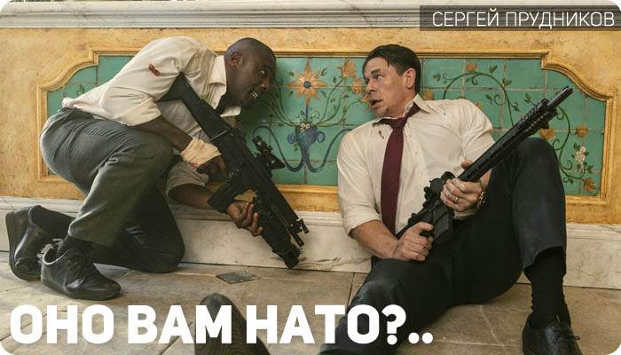 В качестве противников героев выступает колоритная подборка негодяев, где запоминается Александр Кузнецов в роли киллера Саши, который с методичностью ищейки идёт по следу беглых политиков, забавно матерится по-русски и изо всех сил пытается выглядеть сурово, да фактурный Пэдди Консидайн в роли оружейного барона Виктора Градова. Да, злые русские вновь беспокоят умы американских кинематографистов, и Илья Найшуллер выдал ровно тот сорт клюквы, который на западе так любят. Досталось за компанию и белорусам: герои Эльбы и Сины приземляются в белорусской провинции, где с ходу впутываются в замес с компанией местных колоритных гопников, и эта сцена, пожалуй, лучше всего иллюстрирует общую несерьёзную атмосферу и тон картины. Хотя, на минуточку, у нас тут кризис НАТО, которое вот-вот распадётся стараниями коварных злодеев – вроде бы всё очень серьёзно, но почему так смешно?..
