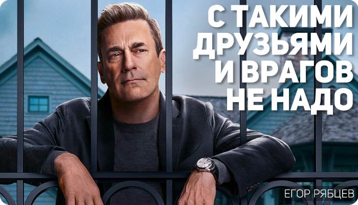 Мужики дождались своего часа: для них снят сериал, претендующий на роль зеркала эпохи. Ну, конечно, не для всех мужчин: «Друзья и соседи» врывается в культурное пространство с шумом разбитого стекла, препарируя знакомую тему в духе «богатые тоже плачут». Джонатан Троппер, автор криминальных саг («Банши»), и Джон Хэмм, вечная тень Дона Дрейпера, объединяются, чтобы исследовать язвы богатой верхушки американского среднего класса… с мужской точки зрения. Сериал встаёт в ряд наследников «Отчаянных домохозяек» и «Большой маленькой лжи», пытаясь примерить одеяние социальной сатиры на тех самых богачей, но неожиданный взгляд поднимает «Друзей и соседей» на уровень выше других поделок на данную тему.