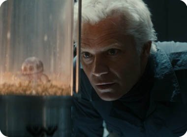 Венди вообще куда больше любит Чужих, чем людей и напоминает какую-то активистку ALM (Alien Lives Matter). Чужие, мол, не виноваты, они не злые, их просто схватили. Но в этом есть хоть какая-то детская (а она, по сути, ребёнок) логика. Зато в чём логика андроида с лицом Тимоти Олифанта, который сначала выпускает заражённого лицехватом человека (прослушивая все переговоры и зная, что готовится рейд от Вейланд-Ютани), а затем захватывает вейланд-ютанийцев? Он как-то подыгрывает обеим сторонам, но закономерно оказывается в дураках. Впрочем, это не очень обидно, потому что в дураках по итогу окажутся вообще все, кроме детишек-синтов. Ну а умнее всех окажется, кроме шуток, овца с инопланетным паразитом. Но уж точно не мальчик-гений, который пытался общаться с инопланетным разумом, показывая ему число Пи (арабские цифры, видимо, понимают во всей Вселенной; странно, что не говорят сразу на английском).