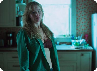 Ближайшим по восприятию аналогом предсказуемо оказывается «мама!» – набирающее обороты безумие внутри базовой ячейки общества. Но, в отличие от фильма Аронофски, Рэмси стремится выжечь всё дотла, оставив после просмотра зияющую пустоту. «Умри, моя любовь» предлагает по-настоящему экстремальный и бескомпромиссный взгляд на постродовую депрессию, прогрессирующий кризис идентичности, который просто так не спишешь на, скажем, гормональный дисбаланс. Ощущение тревожности возникает здесь в первой же сцене с младенцем – тут и нож в руке, и удар ногой по холодильнику. Ну а дальше новые и новые волнения заставляют воображение ломать реальность – благодаря режиссёрскому подходу Рэмси считать приступы эскапизма не всегда получается в моменте, однако, история всё расставляет по местам. Действие будто по воле импульсов своих персонажей перемещается между отдельными эпизодами, флэшбеки лишают координации, путают во времени и пространстве.