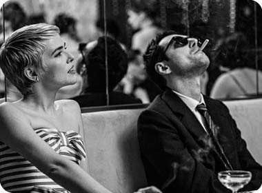 Художественное воплощение замысла в «Новой волне» погружает в эпоху. Линклейтер совершает подвиг стилизации, снимая на чёрно-белую плёнку в «академическом соотношении» сторон 1,37:1. Тут воссоздают ту самую зернистую, контрастную, наполненную жизнью текстуру кино. Даже такие детали, как метки для смены бобин в углу кадра, работают на создание «эффекта аутентичности». Гийом Марбек в роли Годара не просто внешне похож, а ухватывает самую суть: эту смесь высокомерного интеллектуализма, ребячливого озорства и харизмы. Зои Дойч в роли Джин Сиберг точно передаёт и мимику. Обри Дюллен как Бельмондо излучает расслабленную, немного циничную мужественность. Однако главная находка Линклейтера заключена в тоне: «Новая волна» избегает пафоса и торжественности, с которыми часто подходят к «кино-о-кино», как в том же «Манке» Дэвида Финчера. Вместо этого он выбирает форму лёгкой, почти бульварной комедии – не сухой учебник по истории кино, а ностальгию по тому времени, когда многое в кино было впервые и любое творческое решение казалось возможным.