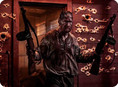 Западные кинокритики сравнивали визуальную часть с чёрно-белыми немыми комедиями 30-х годов: например, сцена, когда герою приходиться пробираться по вагонам со спящими солдатами вызывает ассоциацию с фильмами Бастера Китона. В целом же экшен стал более зрелищным, и практически весь хронометраж фильма состоит из непрерывных перестрелок (даже с учётом абсурдности некоторых ситуаций).