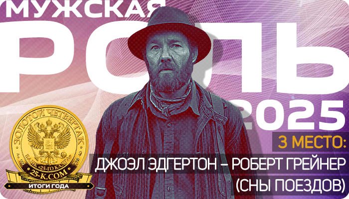 «Снах поездов» выдал один из лучших перформансов в жизни. Ничем не примечательный лесоруб, один из многих таких же работяг, пытающихся заработать на жизнь честным ручным трудом, сталкивается с неумолимым течением времени. Изменчивость мира, легко отбрасывающего на обочину простого человека, личная драма и тоскливое одиночество – жил честно, любил сильно и умер незаметно. Грейнер по большей части молчалив и за его судьбой зритель наблюдает, путешествуя по связке лаконичных, но красноречивых в своей созерцательности воспоминаний, проводником через которые служит именно Эдгертон, своей артистичностью, скупой эмоциональностью и печальным взглядом забирающийся прямо вглубь души.
