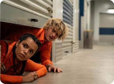 По своей задумке, «Зараза» - кино весьма амбициозное и при другом подходе из ленты мог бы получиться фантастический высокобюджетный триллер вроде нашей «Кольской сверхглубокой». Однако французская студия StudioCanal, выпускающая европейский мейнстрим в широкий мировой прокат и выступающая главным спонсором производства, предпочла сделать лёгкую чёрную комедию, которой в своём наполнении отчаянно не достаёт как той самой комедии, так и пресловутой «чернухи». При том, что и начинается лента довольно серьёзно – с эпизода ликвидации плесени в городке, где все жители погибли самым мерзким образом. В ходе операции погибает одна из учёных, и все это обставлено максимально драматично и жутко, что, впрочем, не мешает Кэмпбеллу в дальнейшем резко изменить тон повествования. Мы знакомимся с героем Джо Кири – Трэвисом – и, давайте скажем честно, он мало чем отличается по характеру от Стива Харрингтона из «Очень странных дел». Симпатичный балабол с криминальным прошлым и широкой душой, который становится героем в кризисный час – всё это мы уже видели неоднократно, хотя Кири, конечно, парень фактурный с большой фанатской базой и приятной харизмой, этого у него не отнять. Ему в спутницы досталась английская актриса Джорджина Кэмпбелл (однофамилица режиссёра), за плечами которой также преимущественно работа в сериалах вроде «Убийства на пляже», «Тёмных начал» или «Чёрного зеркала», хотя и в полном метре девушка засветилась, сыграв в «Наблюдателях», дебюте Ишаны Шьямалан и мощном «Птичьем коробе: Барселона» от Netflix.